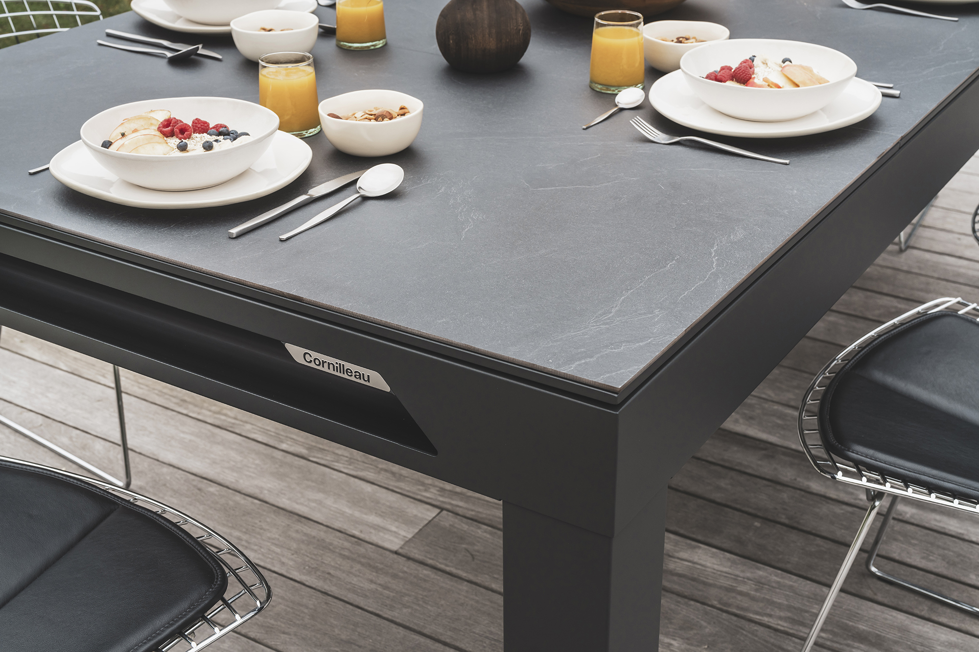 Verwandle deinen CLASSIC Outdoor Billardtisch in Sekundenschnelle in einen stilvollen Gartentisch.