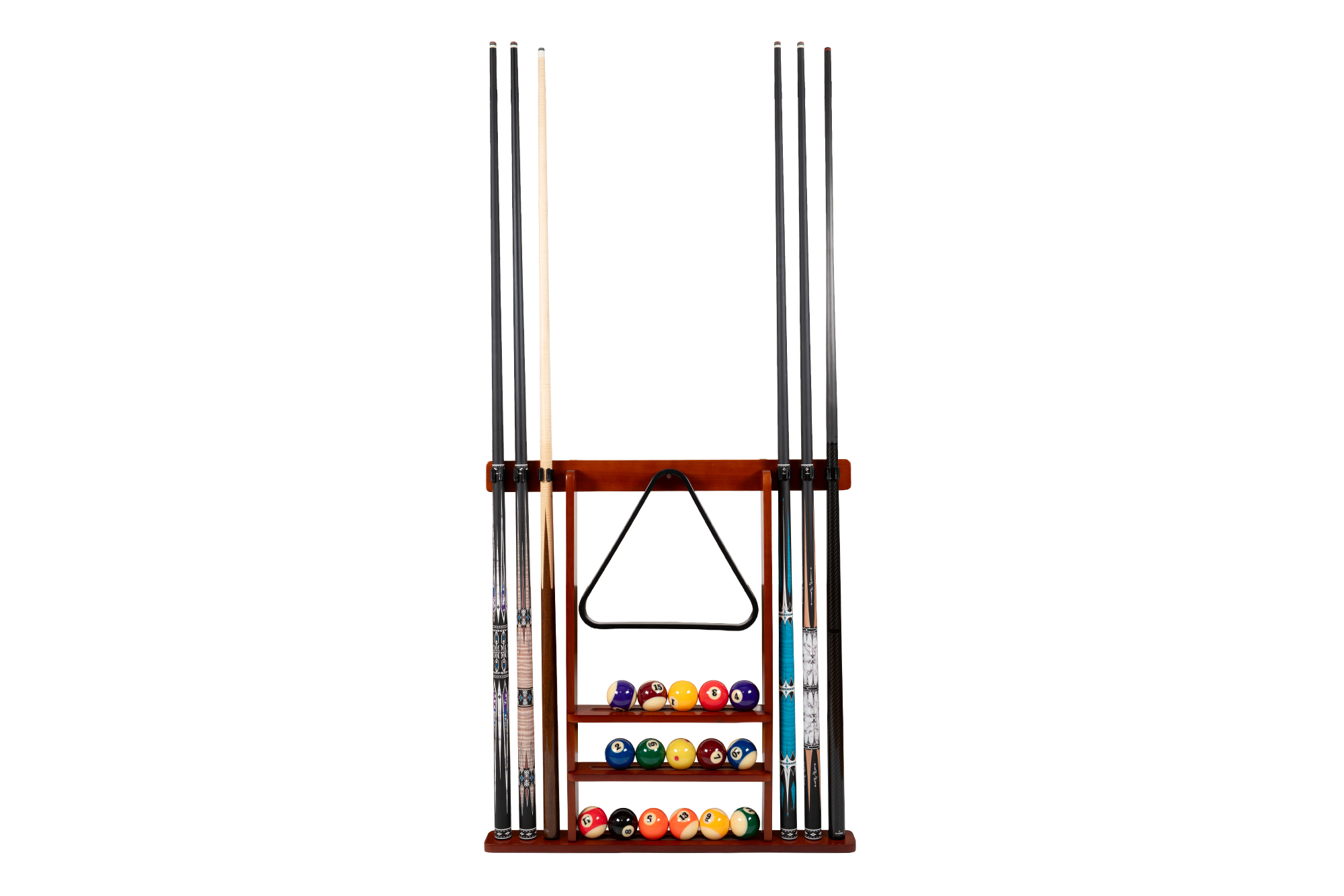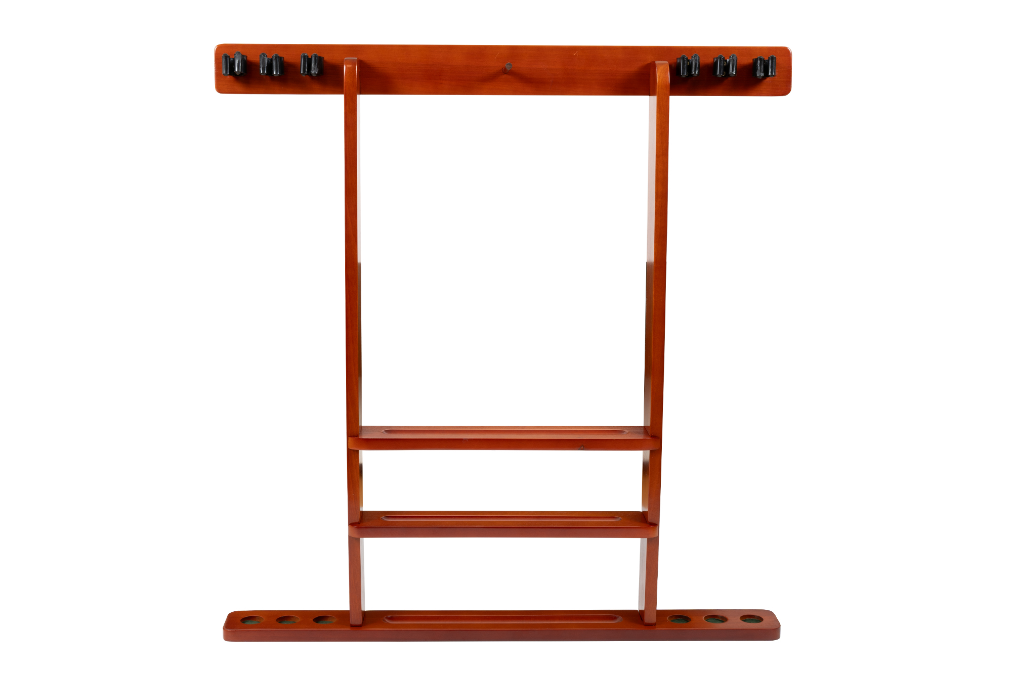 Kompakter Queuehalter im klassischen Design, gefertigt aus hochwertigem Holz, der Queues ordentlich, sicher und platzsparend aufbewahrt. Die stabile Konstruktion sorgt für einen festen Stand und eine übersichtliche Aufbewahrung. Bei Bedarf kann der Halter auch an der Wand montiert werden.