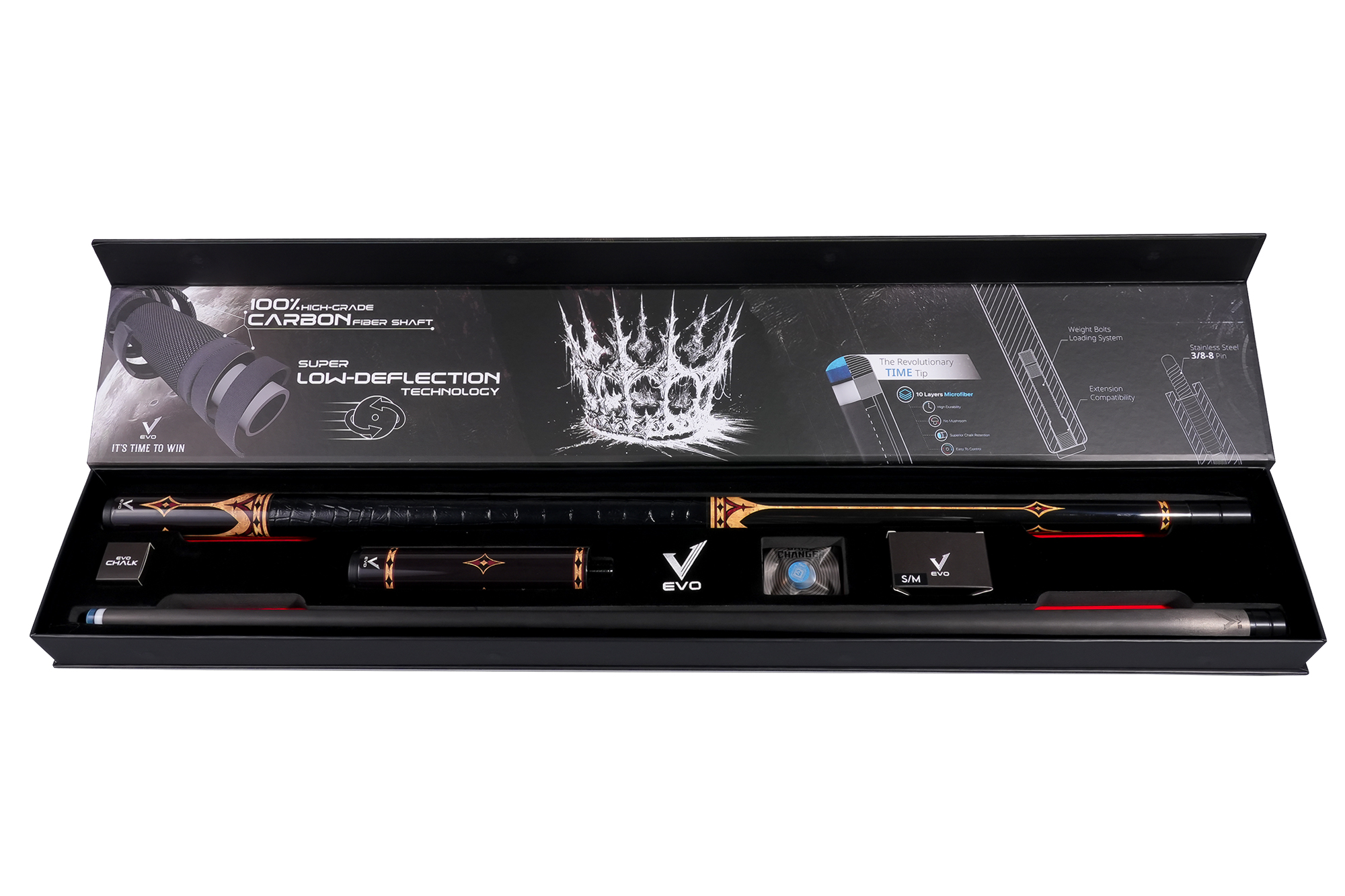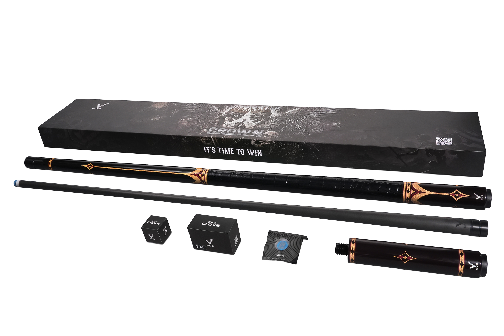 EVO Crown verkörpert pure Kontrolle und technologische Spitzenleistung. Die High-Tech-Hybridstruktur aus Carbon und Glasfaser sorgt für maximale Energieübertragung bei jedem Stoß – bei gleichzeitig minimaler Abweichung. Das fein ausbalancierte Handling und das markante, moderne Design stehen für Stil und Selbstbewusstsein am Tisch. Ein Queue für alle, die das Spiel bestimmen, nicht begleiten.