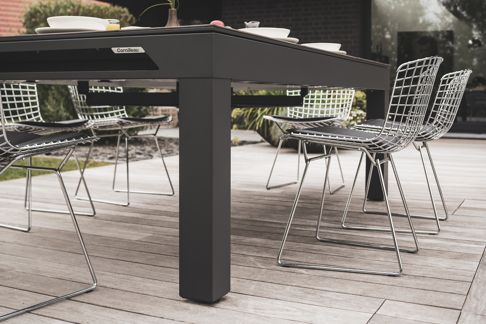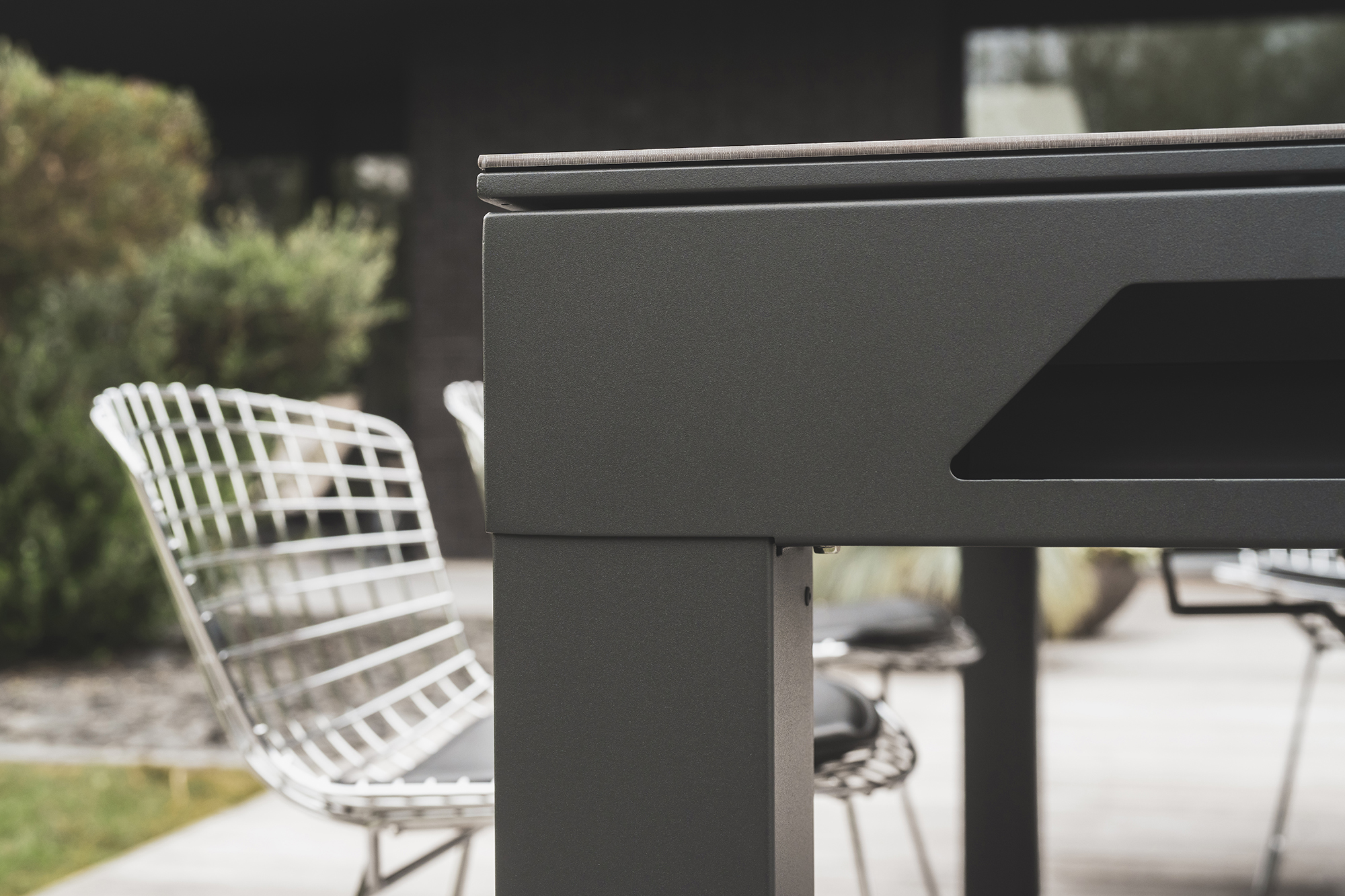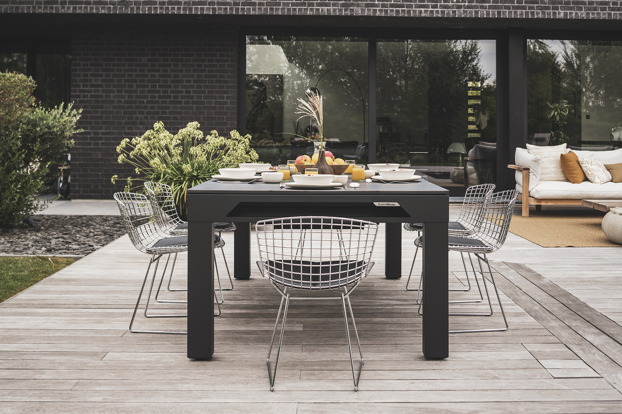 In der Tischvariante entfaltet sich seine klare, zeitlose Ästhetik besonders eindrucksvoll – sie verleiht dem Tisch ikonischen Charakter und lässt ihn sich mühelos in jedes Wohnambiente integrieren.
