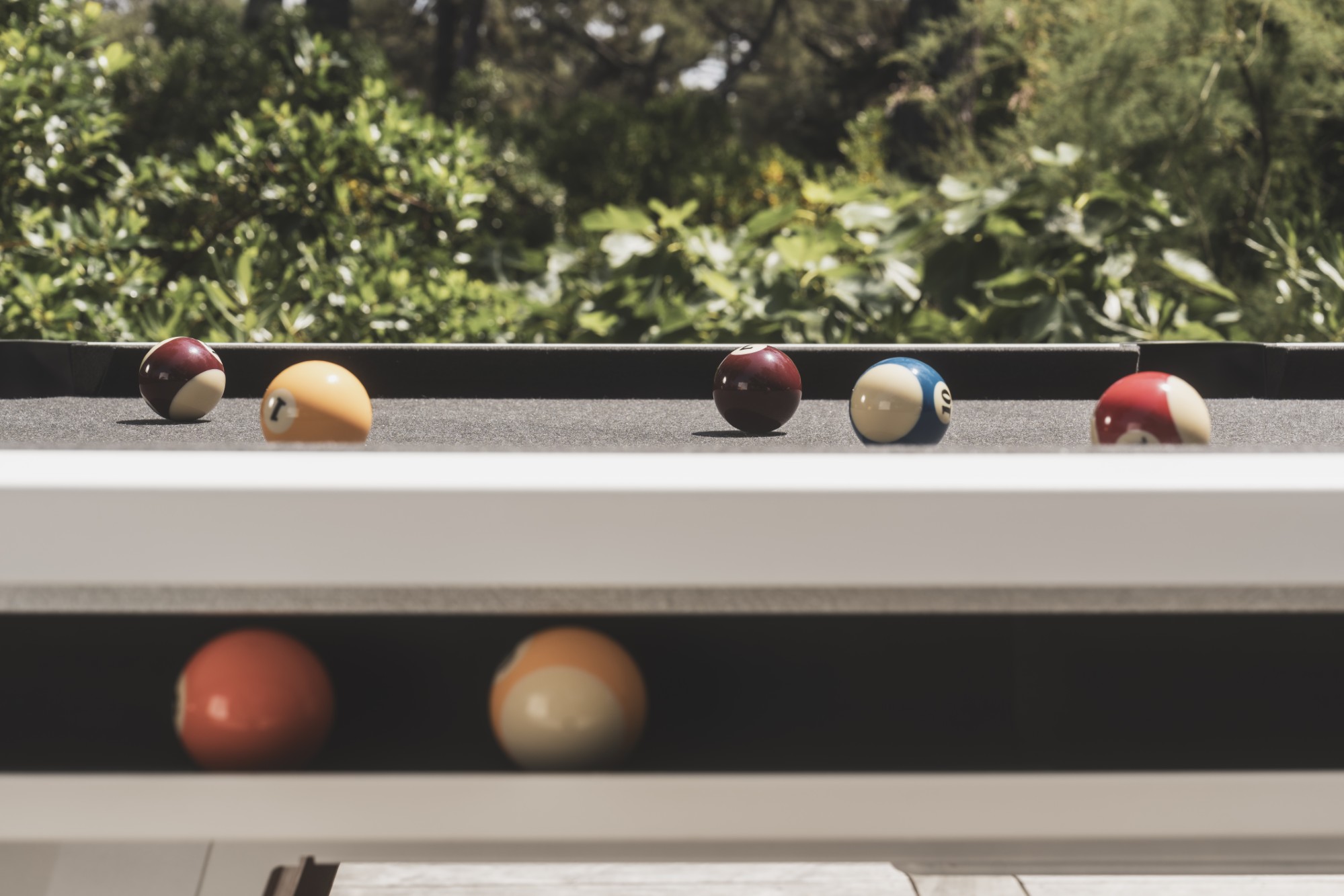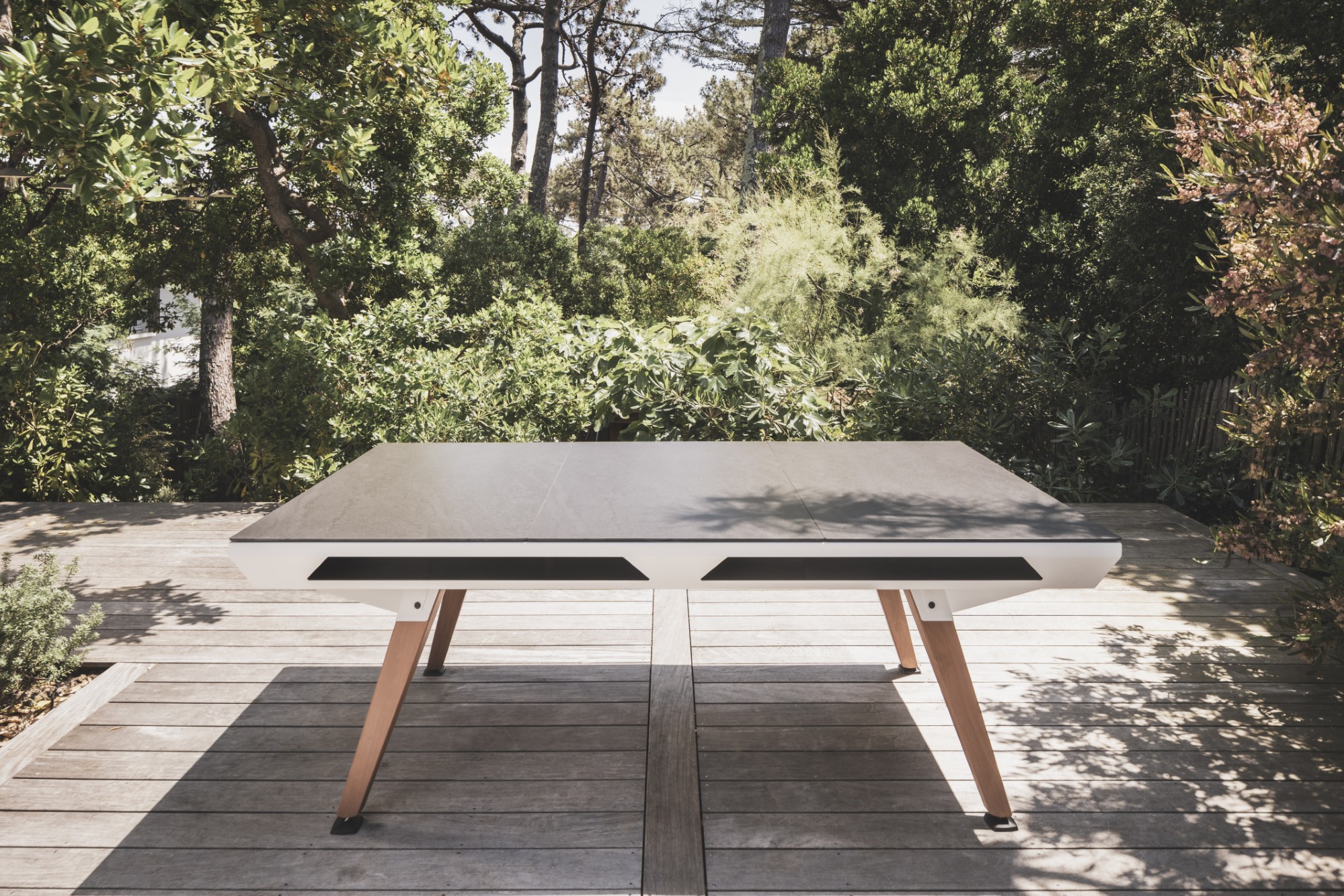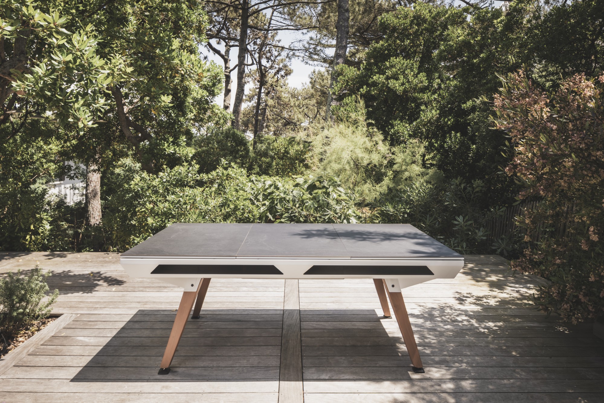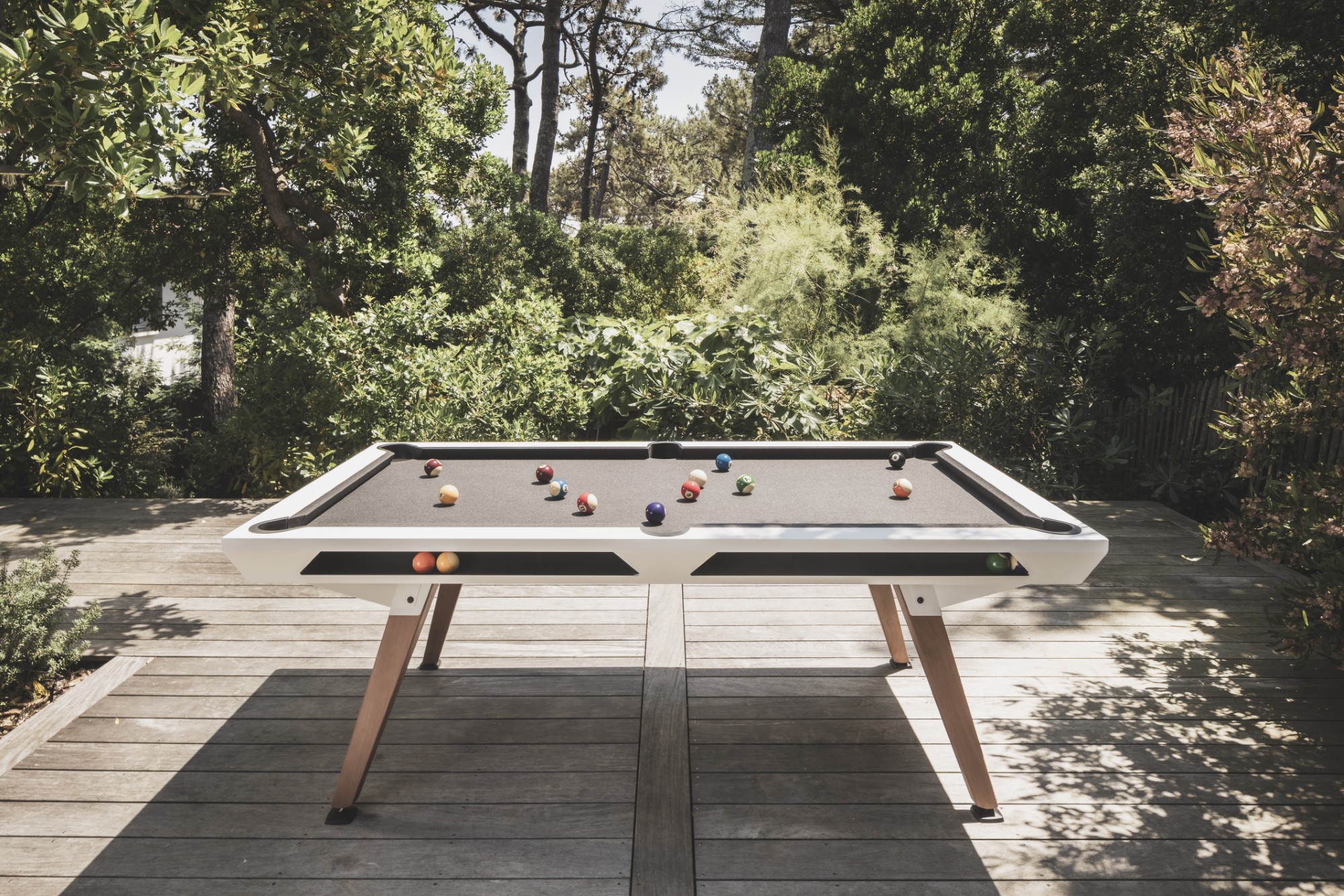 Mit optionalen Tischplatten lässt sich der Origin-Billardtisch im Handumdrehen in einen stilvollen Gartentisch verwandeln. Die Aufsätze sind einfach zu montieren und finden bequem Platz in einem speziellen Fach unter dem Tisch, für maximale Flexibilität und durchdachtes Design.