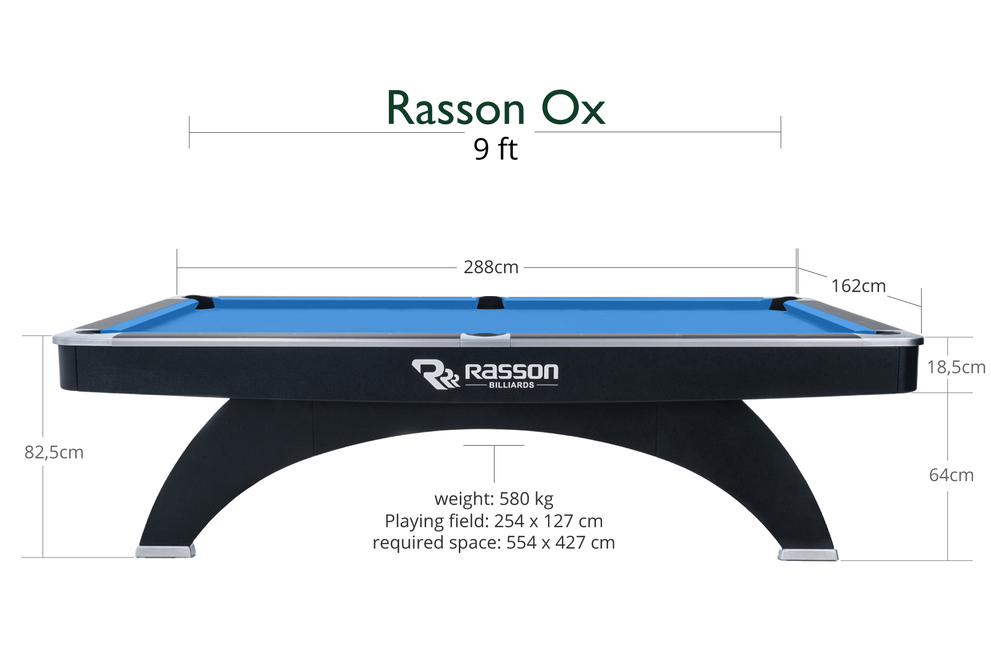 Der ästhetische Unterbau des Ox Billardtisches von Rasson ist ein wahrer Eyecatcher und sorgt für enorme Stabilität. Der Ox ist mit dem eigens von Rasson entworfenen und patentierten SLS (Slate Leveling System) und LLS (Leg Leveling System) sowie TPR-Materialtaschen ausgestattet.
