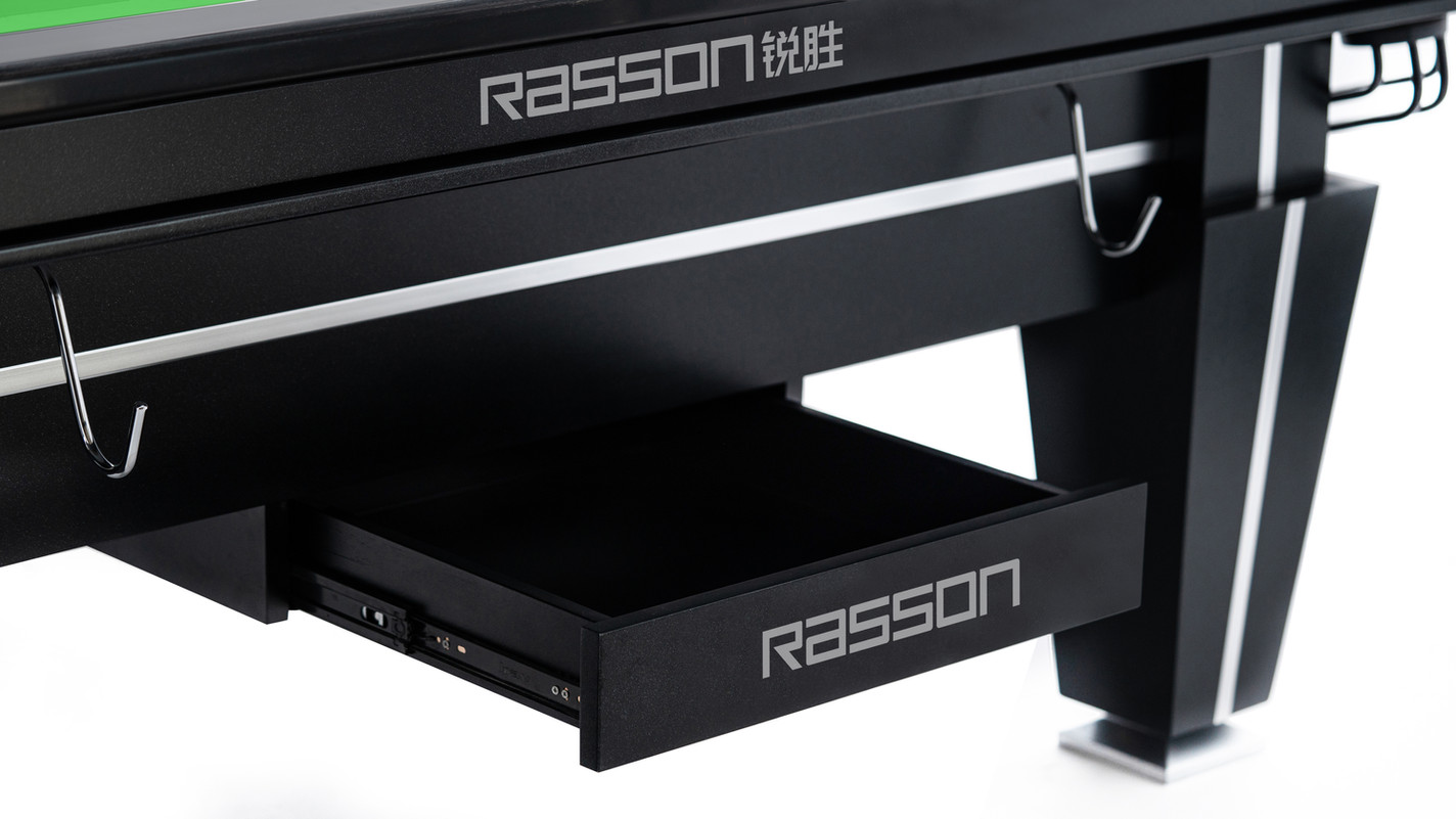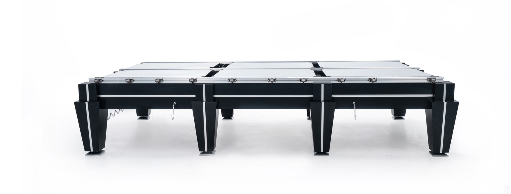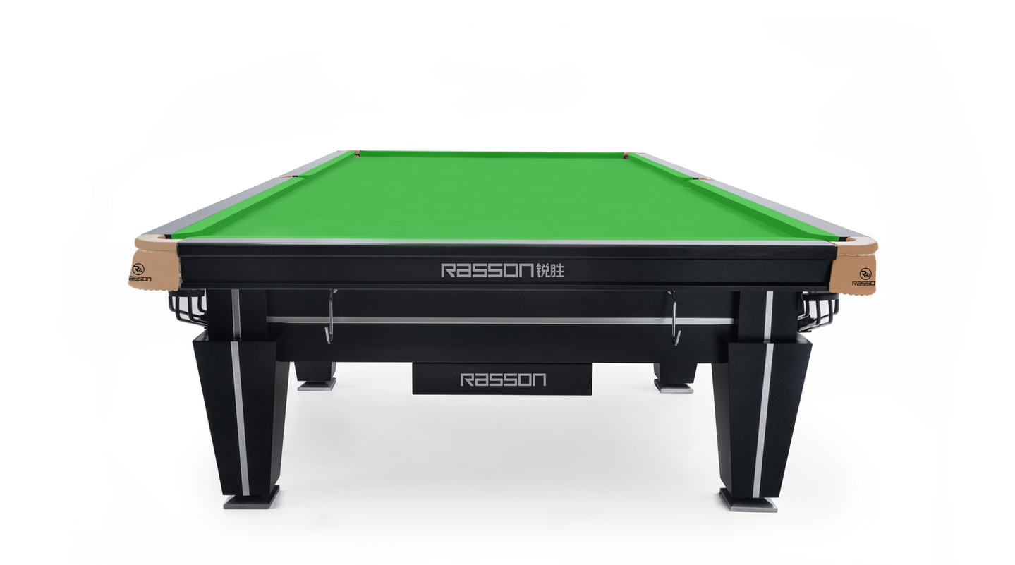Der Tisch verfügt über fünf präzise zugeschnittene Schieferplatten aus 45 mm starkem Premium-RASSON-Schiefer. Jeder einzelne Abschnitt wird geschliffen und auf eine Ebenheitstoleranz von weniger als 0,2 mm kalibriert, für absolute Präzision und gleichbleibende Spielqualität.