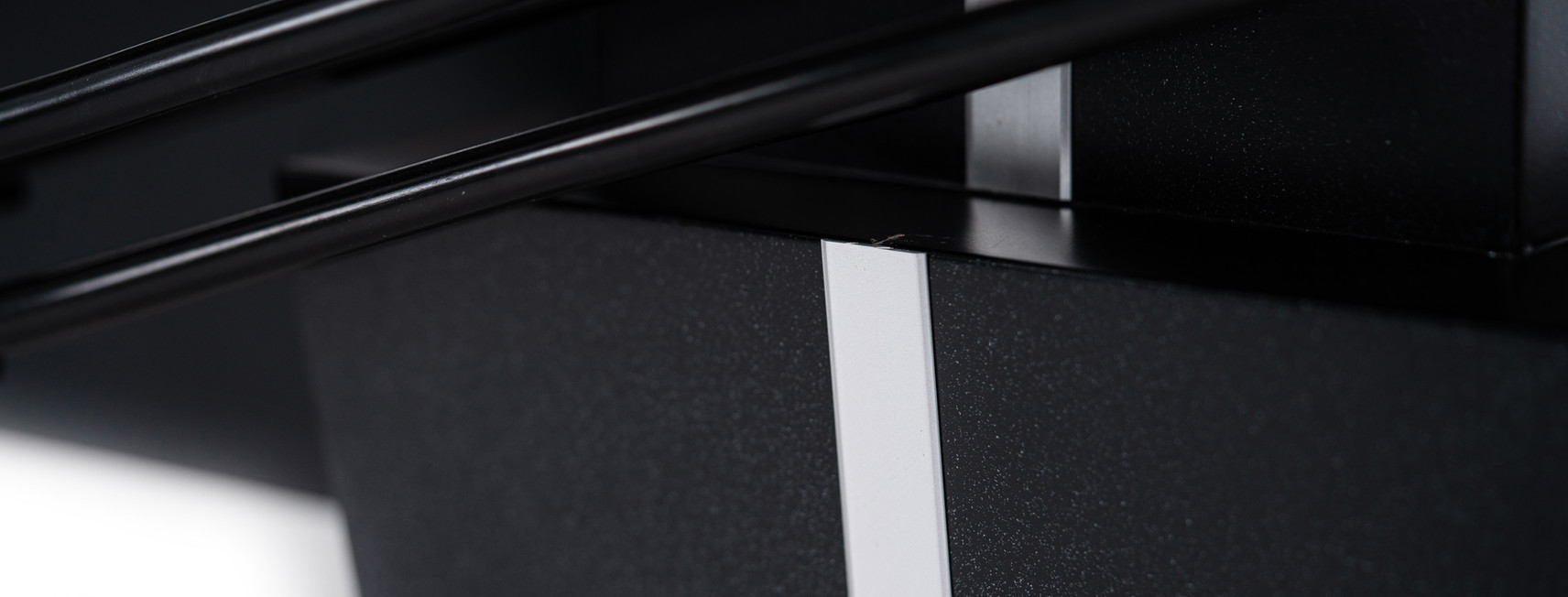 Ein 50 mm starker Korpus aus massivem Holz integriert einen patentierten Träger aus Aluminiumlegierung und sorgt so für außergewöhnliche Stabilität und dauerhafte Planheit. Seitliche Aluminiumleisten verleihen dem Tisch zudem einen modernen Look.
