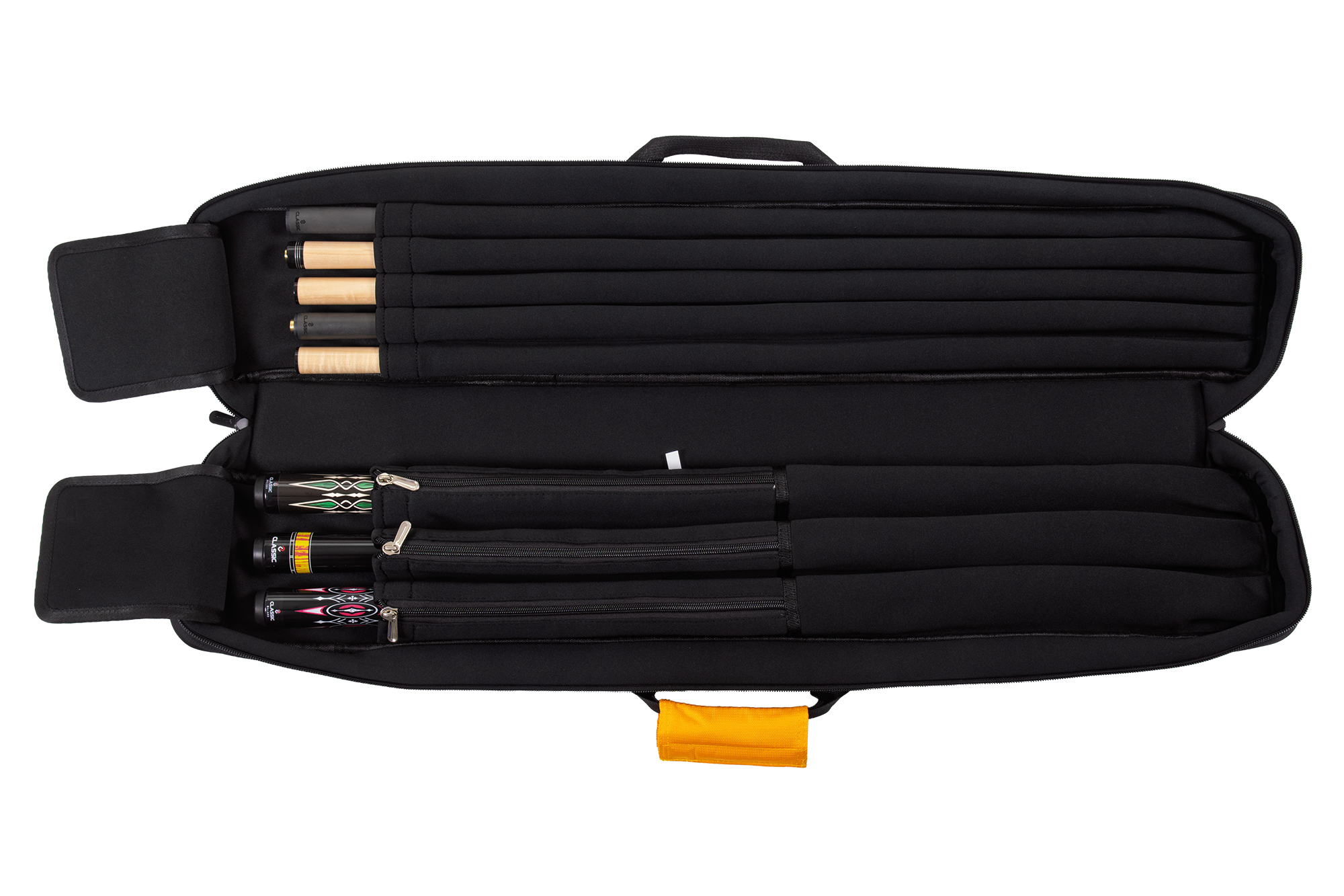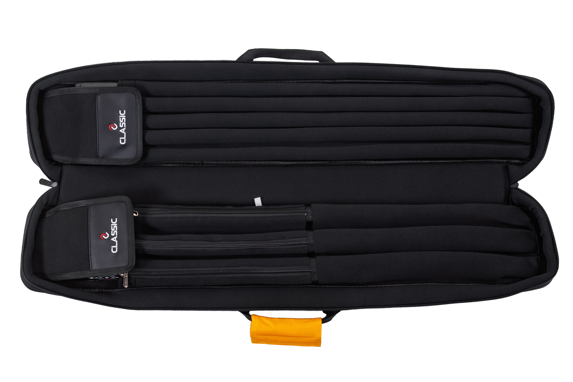 Die Classic CueBuddy vereint Funktionalität, Schutz und dezentes Design in einer durchdachten Queuetasche. Ihr robustes Oxford-Gewebe in charakteristischer Webstruktur mit spritzwasserabweisender Oberfläche sorgt für Langlebigkeit im täglichen Einsatz, während das weich gepolsterte Innenfutter aus hochwertigem Neopren („Diving Material“) Queues und Oberteile zuverlässig schützt. Zwei unterschiedlich große Außentaschen bieten Platz für Zubehör wie Kreide, Handschuhe oder Verlängerungen, und die robuste Klickschnalle fixiert die Tasche zusätzlich beim Transport. Dank des verstellbaren Schultergurts mit stabiler D-Ring-Aufhängung und dem gepolsterten Tragegriff lässt sich die CueBuddy bequem und sicher tragen – ob ins Training, Turnier oder Billardclub.