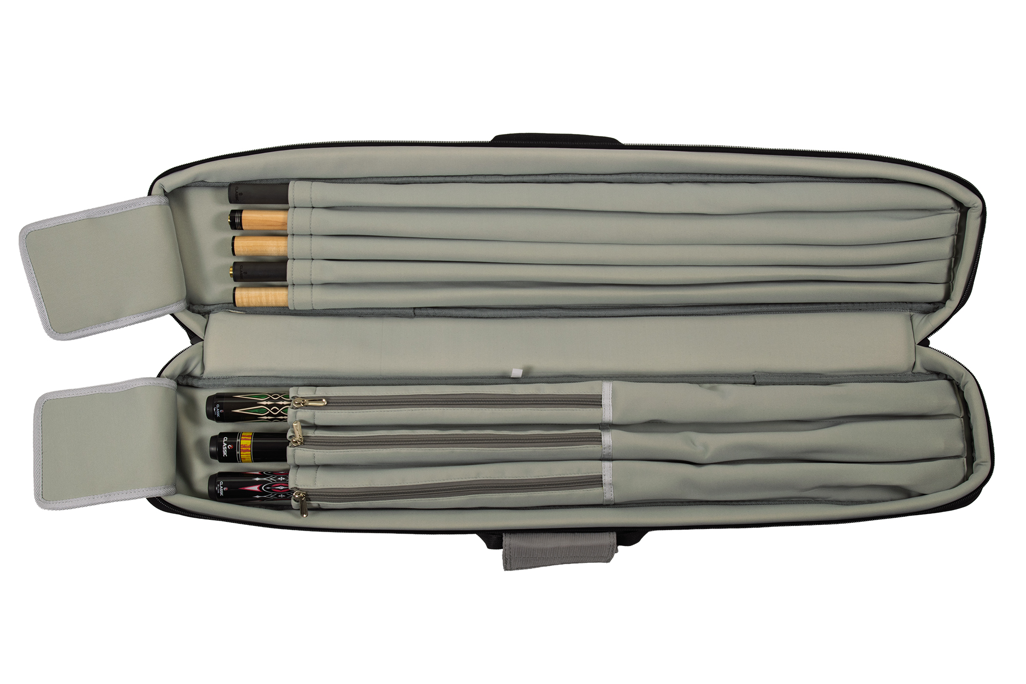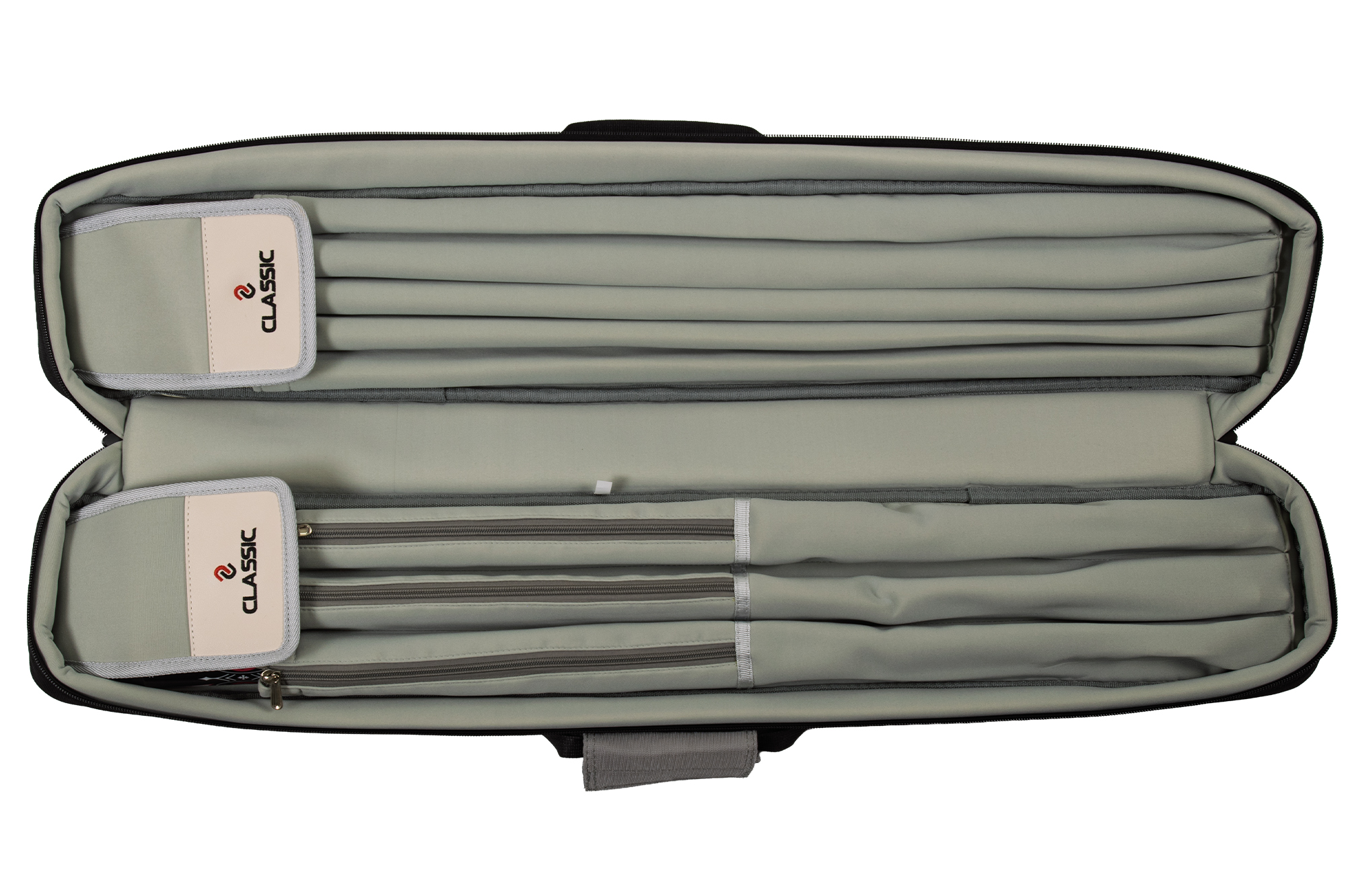 Die Classic CueBuddy vereint Funktionalität, Schutz und dezentes Design in einer durchdachten Queuetasche. Ihr robustes Oxford-Gewebe in charakteristischer Webstruktur mit spritzwasserabweisender Oberfläche sorgt für Langlebigkeit im täglichen Einsatz, während das weich gepolsterte Innenfutter aus hochwertigem Neopren („Diving Material“) Queues und Oberteile zuverlässig schützt. Zwei unterschiedlich große Außentaschen bieten Platz für Zubehör wie Kreide, Handschuhe oder Verlängerungen, und die robuste Klickschnalle fixiert die Tasche zusätzlich beim Transport. Dank des verstellbaren Schultergurts mit stabiler D-Ring-Aufhängung und dem gepolsterten Tragegriff lässt sich die CueBuddy bequem und sicher tragen – ob ins Training, Turnier oder Billardclub.
