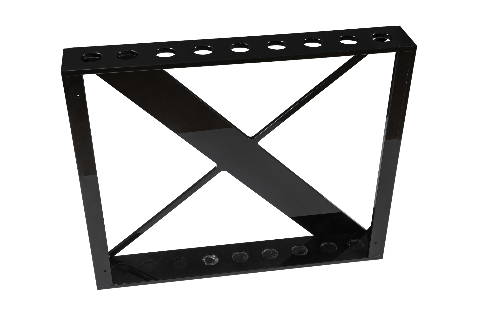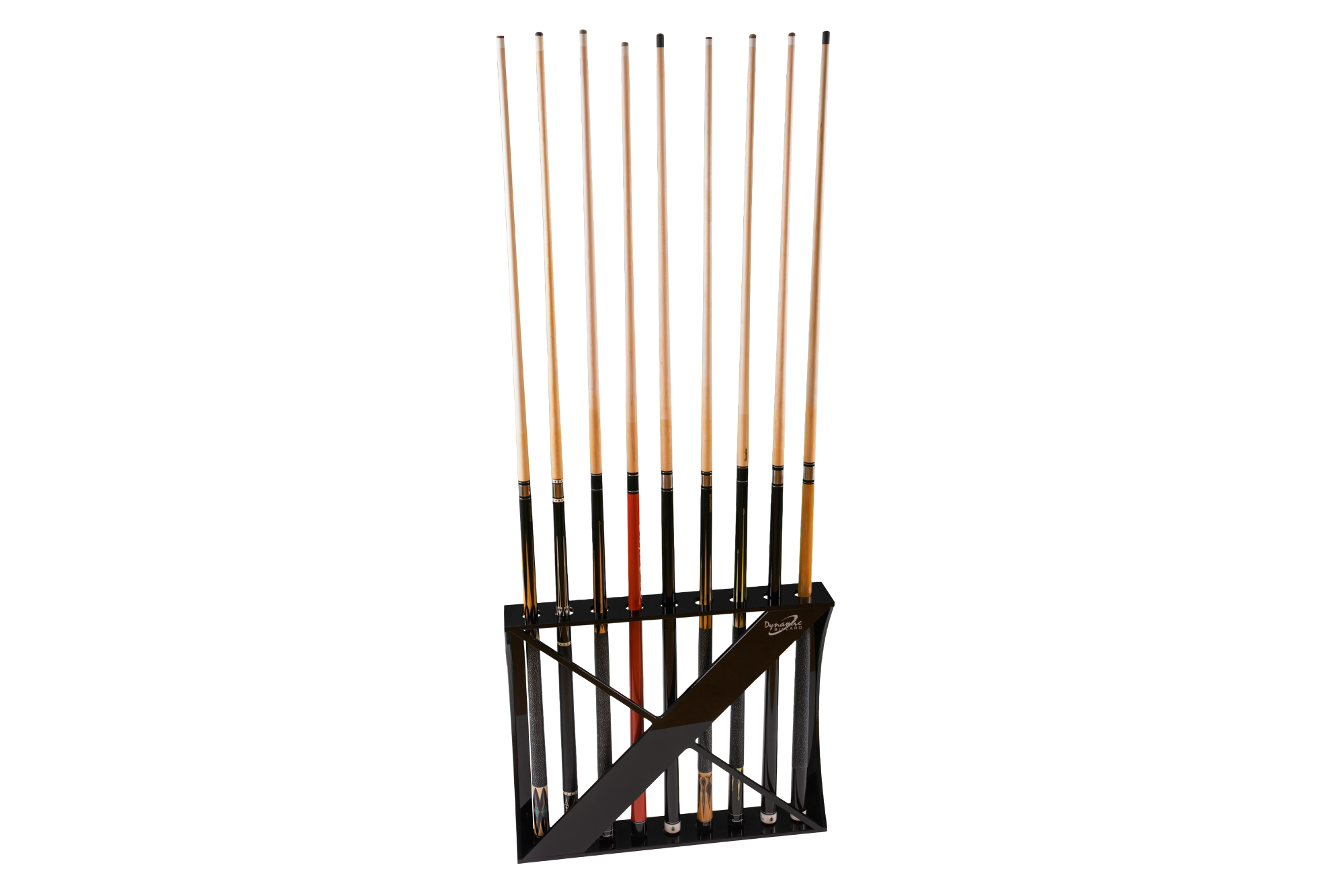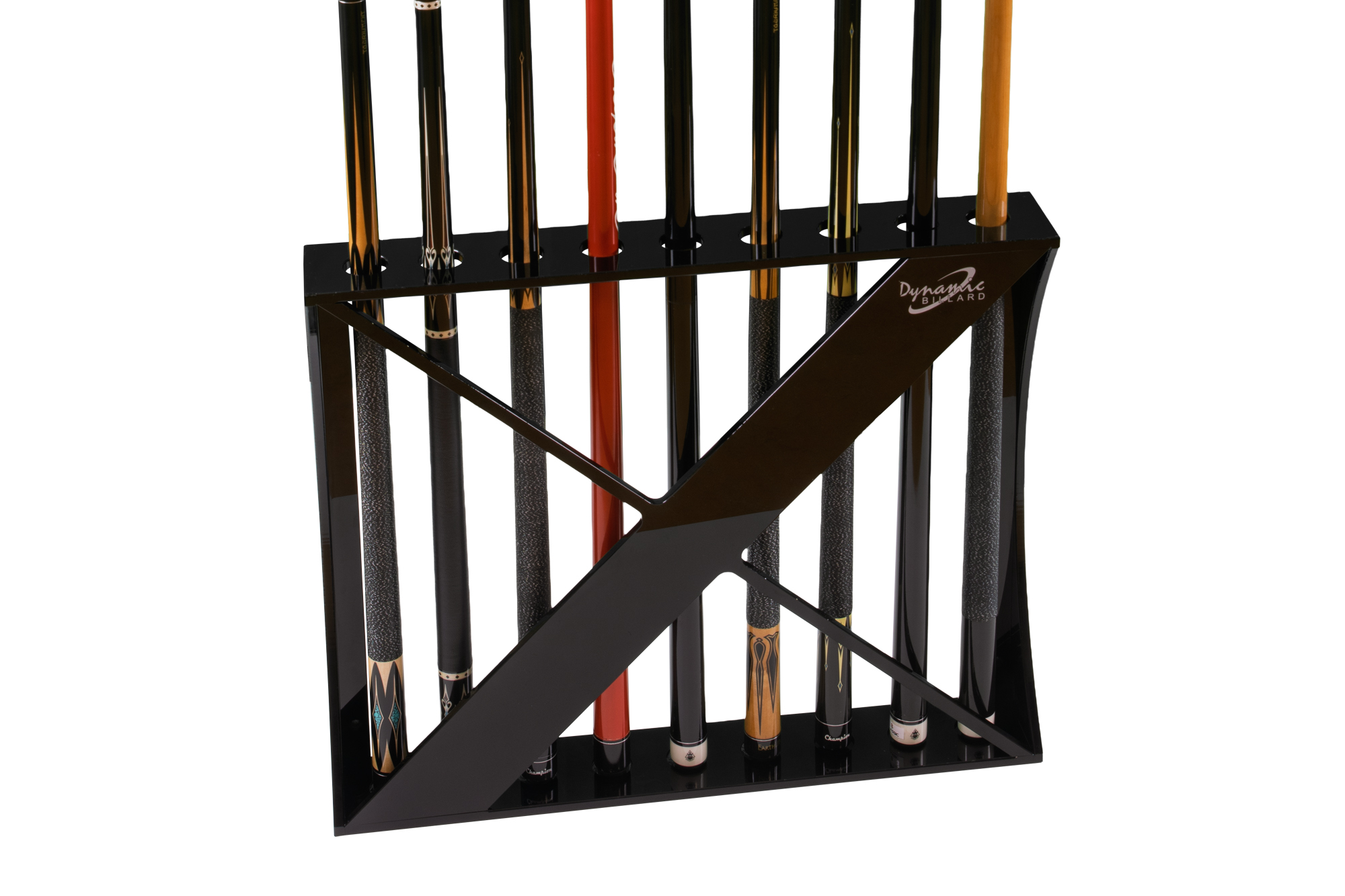Mit seiner klaren Linienführung und der markanten Kreuzverstrebung setzt der Dynamic Club II Queueständer einen stilvollen Akzent in jedem Billardraum. Gefertigt aus glänzend schwarzem Acrylglas, bietet er Platz für bis zu 9 Queues und überzeugt durch sein modernes, harmonisches Erscheinungsbild. Der Ständer kann sowohl freistehend als auch wandmontiert verwendet werden und passt sich damit flexibel jeder Raumgestaltung an. Die glatte, pflegeleichte Oberfläche betont den edlen Charakter und macht ihn zu einer langlebigen, praktischen Lösung für den täglichen Einsatz.