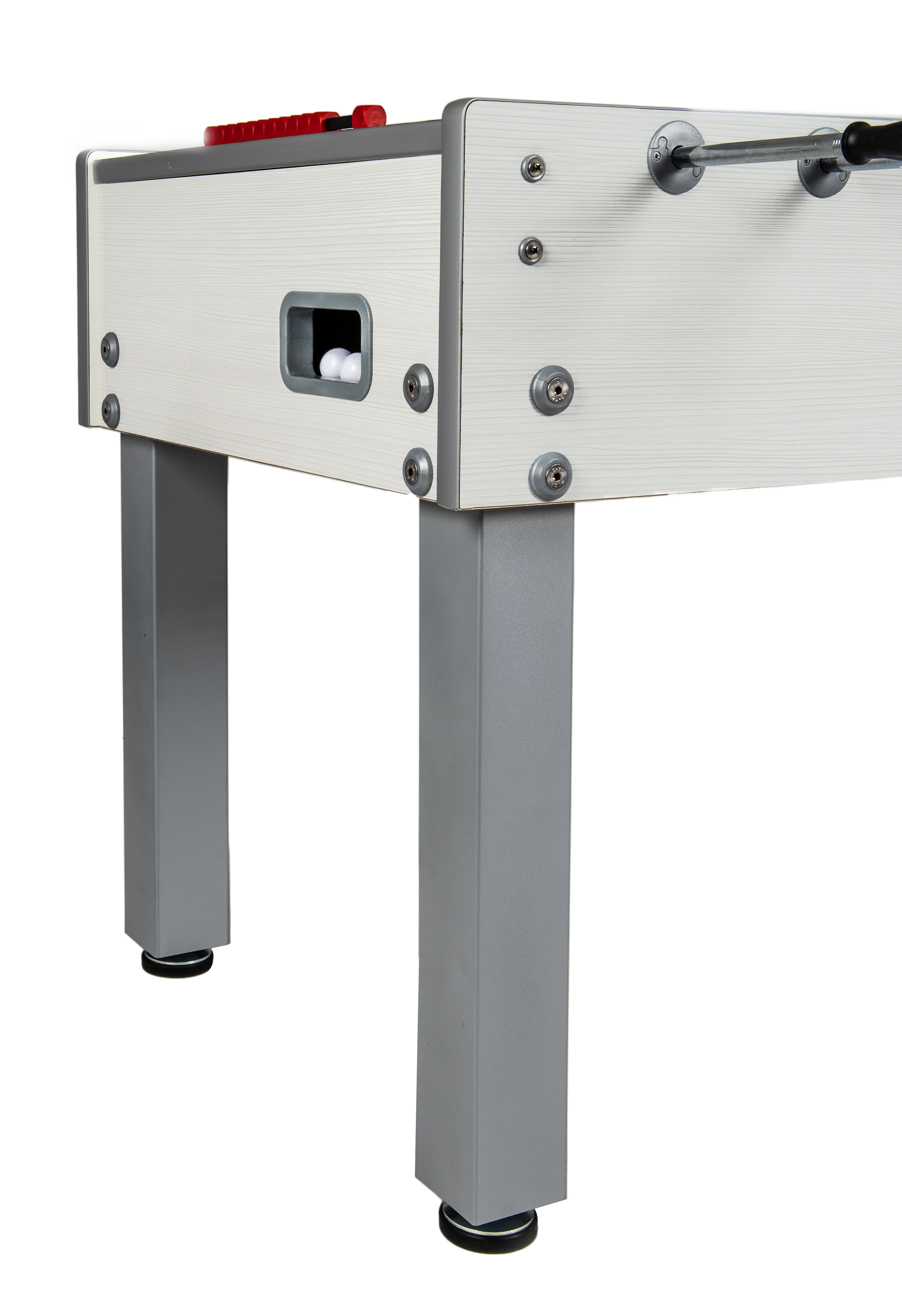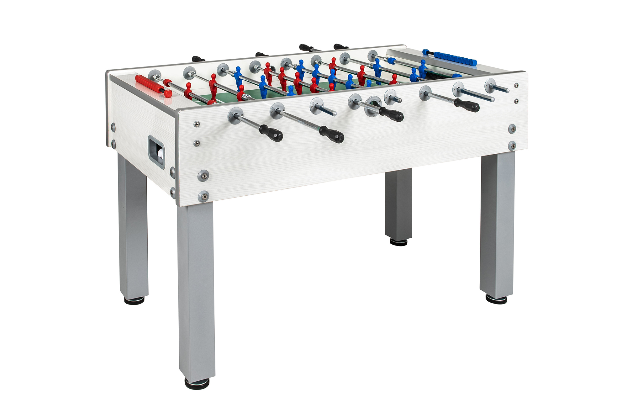 The G500-Outdoor White is a top-quality table soccer table produced in Europe and is expertly put together through the selection of high-quality materials and technically demanding components. Equipped with a 30mm thick weather-resistant glued multi-layer body with a surface that has a robust melamine coating. The weather-resistant white decor with a wood grain finish is easy to clean. The ideal table soccer table for outdoor areas, suitable for youth rooms/schools, camping sites, swimming pools, clubhouses, and official facilities.