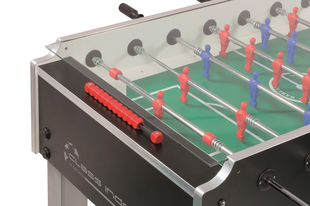 The Master Class EVO Indoor is a first-class foosball table produced in Europe, which was excellently put together through the selection of high-quality materials and technically sophisticated components. Thanks to the high-quality, black and silver Evolution decor, it fits into almost any ambience. Due to the stable table construction, the Master Class Evo Indoor has the very best prerequisites and properties, so that it fits perfectly into any interior area of leisure and youth facilities, schools, and clubhouses. The glass cover and the closed ball system prevent unwanted ball removal or damage to the body.