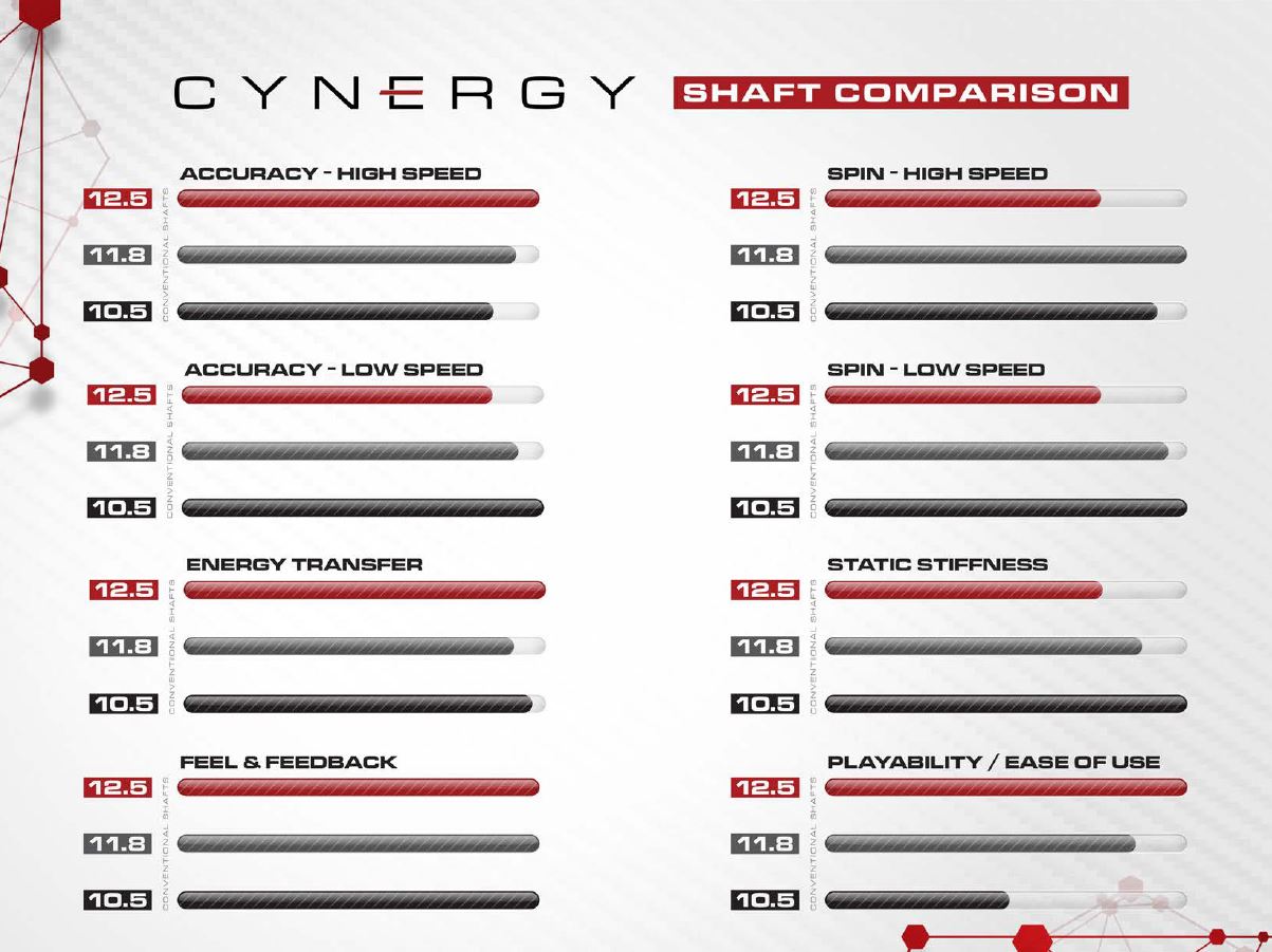 Less weight means less deflection. Benefiting from their ultra-strong carbon composite construction, each Cynergy shaft features Cuetec’s flyweight front-end build. This construction allows the Cynergy poly-foam to stop five inches below the tip, creating a rigid cavity with less mass and therefore less deflection on contact.