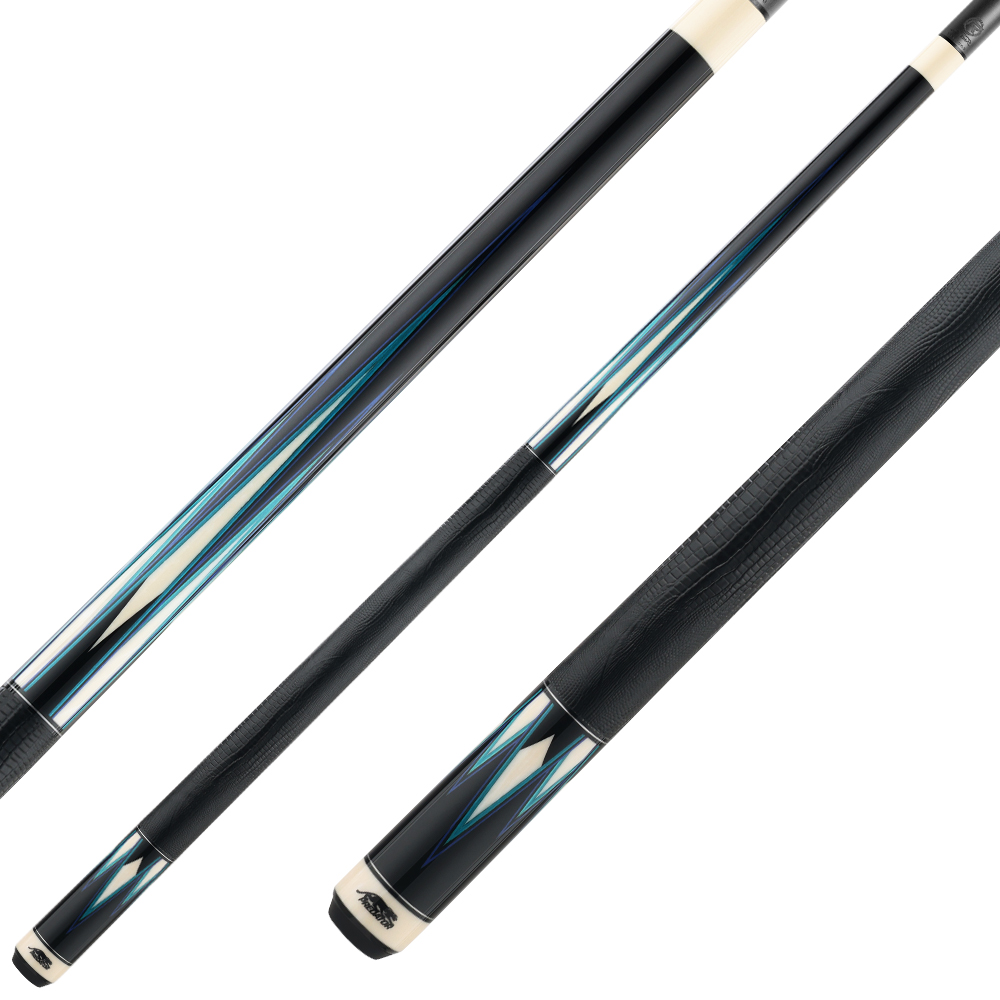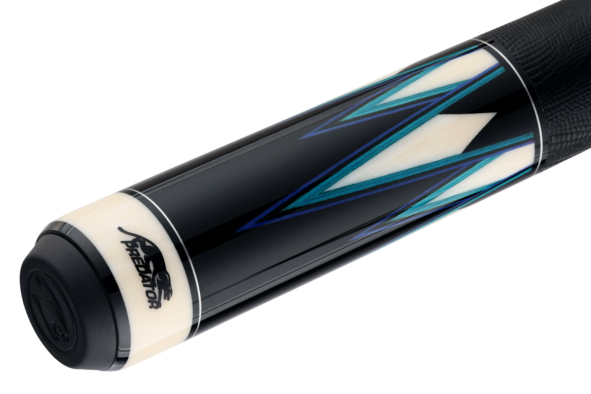- Ebony Butt Sleeve with Eight Spliced Butt Sleeve Points with Dark Blue, Black, Light Blue and Teal Veneers with Ebony and Ivorine details